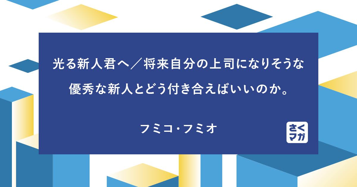優秀な新人に僕らはどう対応すればいいのだろう。彼らを目の当たりにしたときに覚える嫉妬や焦りから完全に自由にはなれない。とはいえ優秀な新人を粗末に扱うと「人間としてどうなの?」「みじめな奴だ」と周囲から見られる。また、優秀な新人は我々先輩に対しての気遣いまで万全なので、それがまた己の人間の小ささを突き付けられる。きっつー。