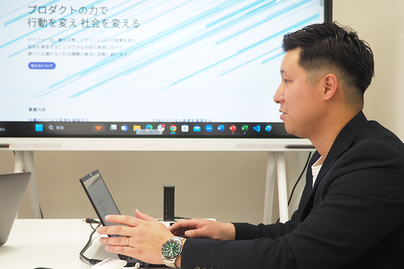 「当社が提供する民間企業向けプロダクトの1つに『Graffer AI Solution』があります。事業や業務改善への生成AI活用方法をご提案するものです。多くの自治体も生成AIに強い関心を持っていることから、どのように行政サービスに最適化できるかを彼らとともに検討しています。