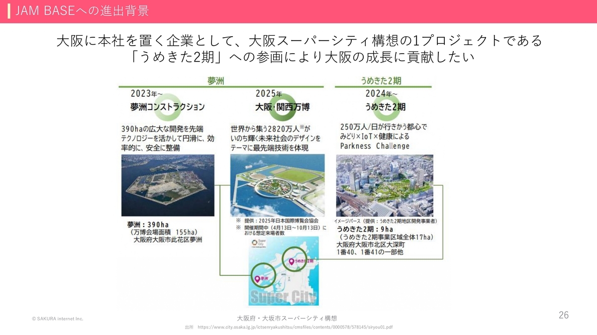大阪のスーパーシティ構想の延長線上に、うめきた2期の計画が入っており、梅田エリアは駅の利用者も多く、関西の方が集う場所を考えたとき、第一想起する場所だと思います。そこに「みどり」と「イノベーション」の融合を目指すグラングリーン大阪が開発され、さくらインターネットも参入できたら、こんなに素晴らしいことはないと思っています。