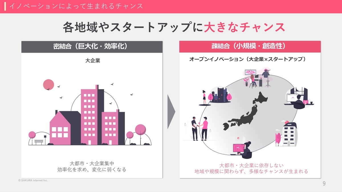そんななか、どの分野においても、スタートアップやオープンイノベーションが会社の実績・実利につながり、社会を良くするために効果を発揮する時代になると考えています。関西においても、かなり前からイノベーションが叫ばれていました。今こそオープンイノベーションが関西を加速させていくと感じています。