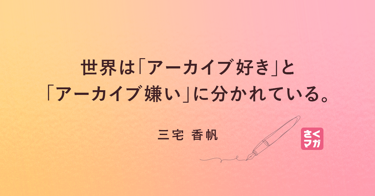 なので、アーカイブ好き派か嫌い派か、世の中はぱっくり二分される。と私は思っている。