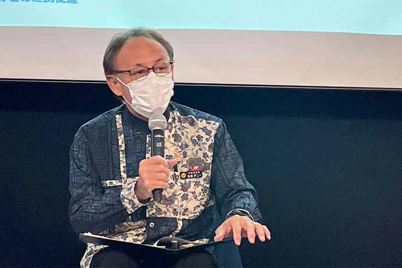 玉城 デニーさん(以下、玉城):沖縄県は、今年2022年で本土復帰50周年。大きな節目として、これからの10年で沖縄がめざす方向性を示した「新・沖縄21世紀ビジョン基本計画」を策定しました。希望と活力あふれる島を目指して、県内産業の持続可能な経済成長に向けて、DX の加速、イノベーションの促進などによって、「稼ぐ力」の向上に取り組もうと思っています。