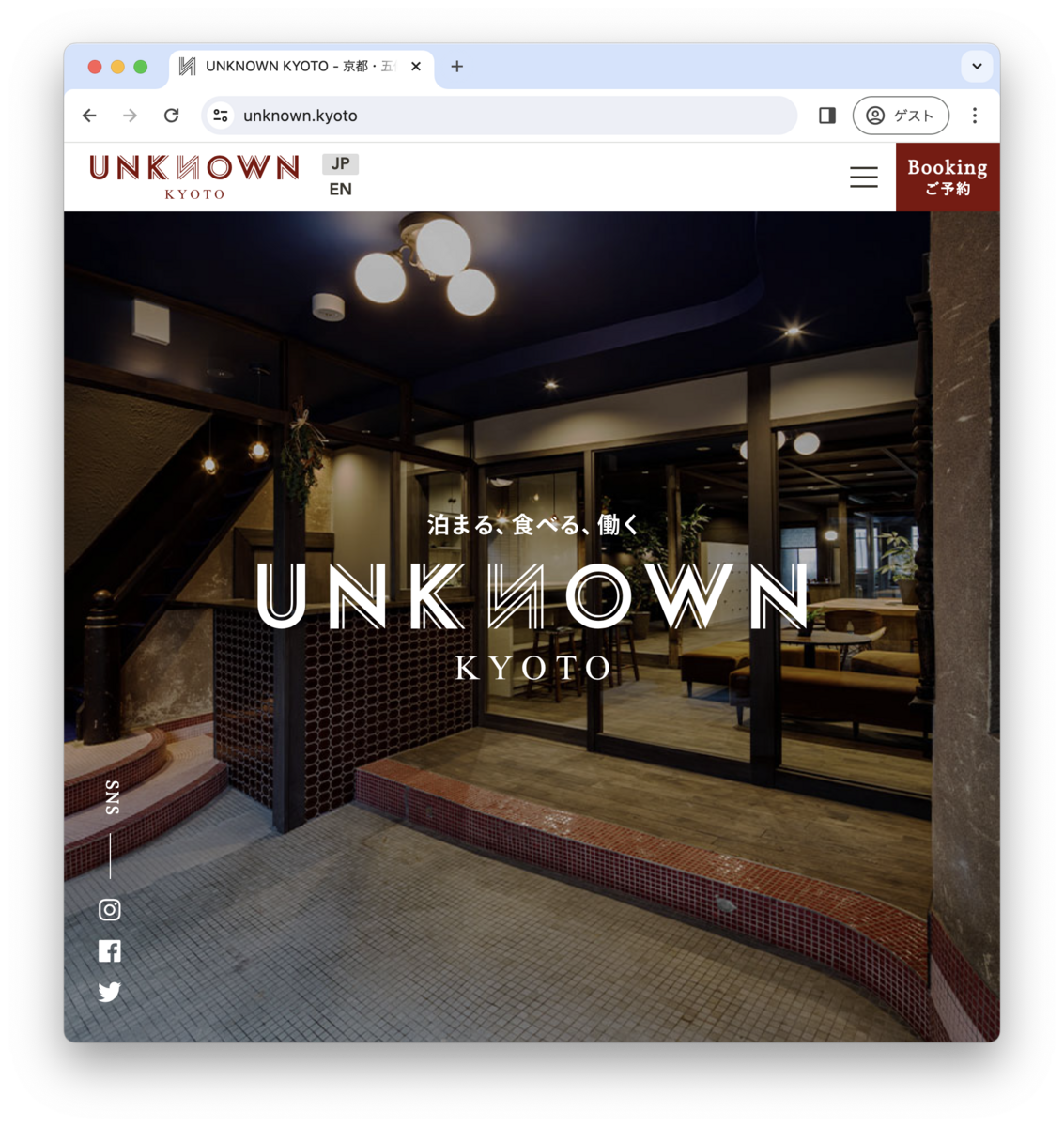 京都府・清水五条駅近くの複合施設「UNKNOWN KYOTO」。宿泊施設とコワーキング施設、レストランを併設する(提供:OND)