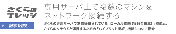 さくらの専用サーバでは、ローカル側での複数台構成がコントロールパネルから簡単に設定可能です。台数上限がなく、サービス規模の拡張に合わせスケールアウトが行え、エクスプレスシリーズとアドバンスドシリーズを組み合わせた構成も自由に設定いただけます。