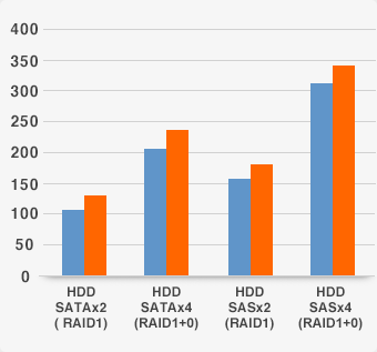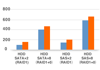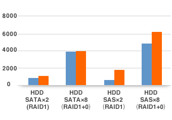 | HDD SATA×8(RAID1+0) | 403 | 482 | 3882 | 3914 |