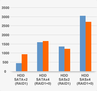 | HDD SAS×2(RAID1) | 151 | 210 | 603 | 1728 |