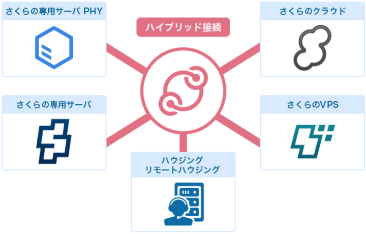 また、さくらのクラウドとさくらの専用サーバ PHY、さくらの専用サーバ、VPSのサービス間接続につきましては、さくらのクラウドのコントロールパネルよりブリッジ接続をお申し込みいただくことで、ハイブリッド接続同様のサービス間接続を、オンデマンドで実現できます。ブリッジ接続で接続出来る範囲の接続はブリッジ接続をおすすめいたします。