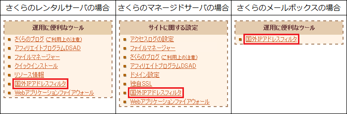 「国外IPアドレスフィルタ」では、海外からの不正なアクセスを防ぐため、国外IPアドレスからの特定のアクセスを制限します。