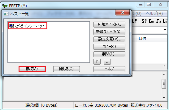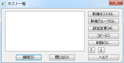 FFFTPの起動と同時に「 ホスト一覧 」の画面が表示されます。