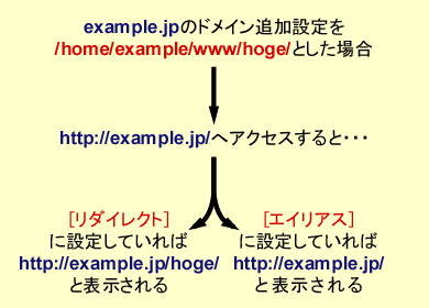 ドメイン名 アクション フォルダ example.jp リダイレクト /hoge