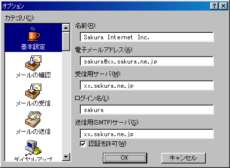 オプション 「カテゴリ(C)」 から 「基本設定」を選択します。 (基本設定)