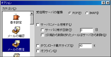 オプション 「カテゴリ(C)」 から 「メールの受信」を選択します。 (メールの受信) ● STEP 3 - 完了