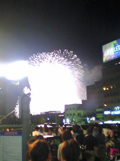右の写真は、平成淀川花火大会。ヨドバシカメラの裏手が観覧の穴場でした。