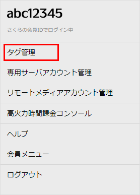 3画面右上部の歯車マークをクリックし、次に『タグ管理』をクリックします。