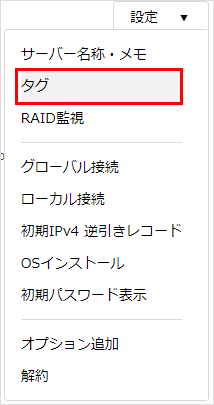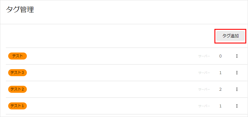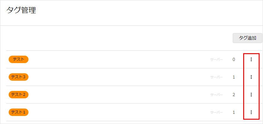 タグの「追加」・「編集」・「削除」、作成したタグをサーバーサービスに対し付けたり外したりすることができます。