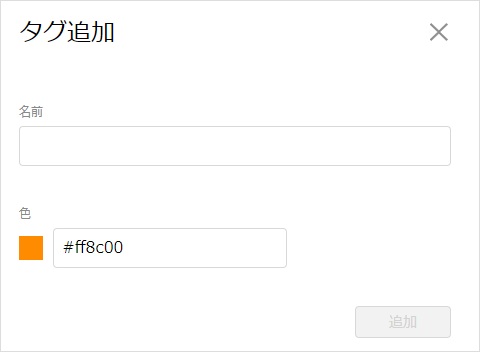 追加 | タグを新規で作成します。 任意の名前と色を付けることができます。 |