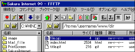 ここでは代表的なFTPソフトウェア FFFTP (フリーソフト) での操作方法を解説します。
