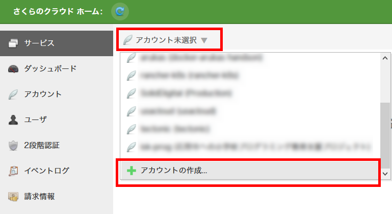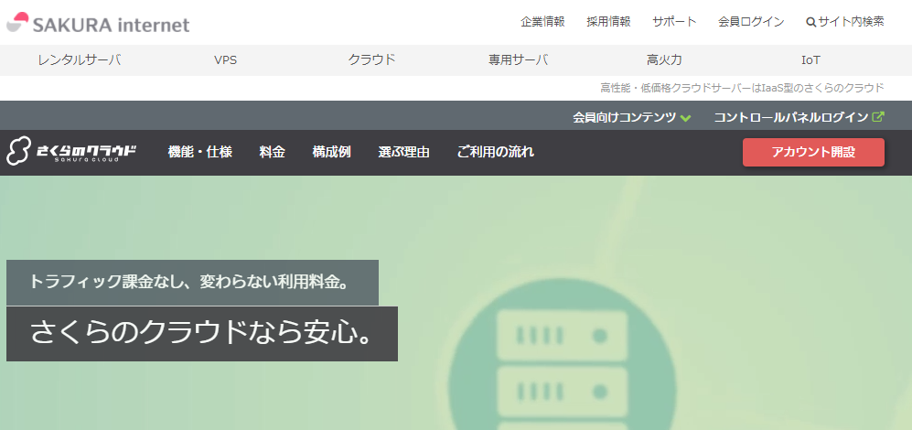 さくらのクラウド サービスサイト にアクセスし、画面上部に表示される【アカウント開設】の赤いボタンをクリックします。