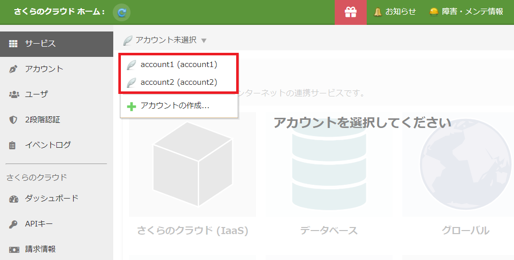 コントロールパネルへログインするためのアカウントは 「さくらのクラウド」サービス と共用となります。詳細については アカウント管理 を確認してださい。