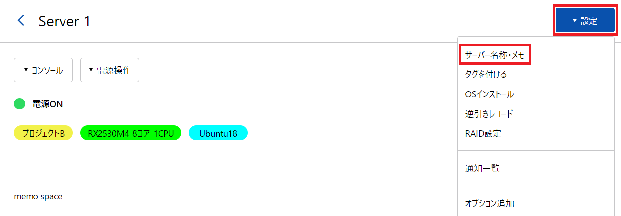 3.詳細画面右上の「設定」から「名称・メモ」をクリックします。