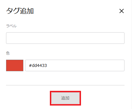 ラベルの名前と、任意の色を設定し、「追加」をクリックします