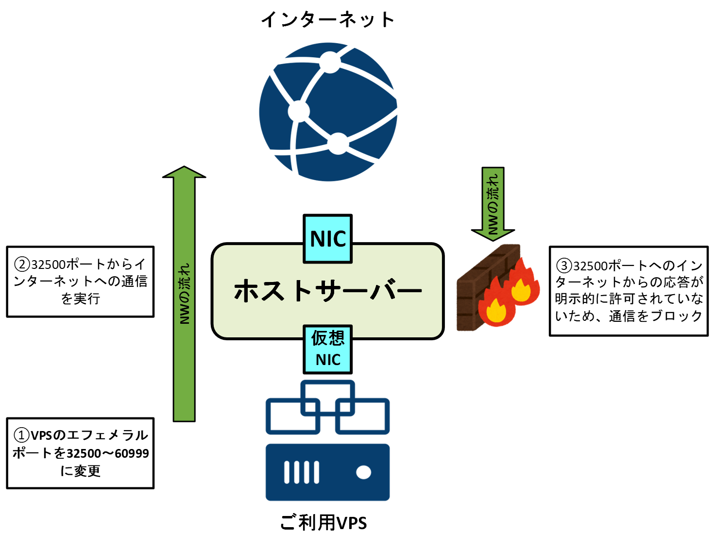VPS内部にて、エフェメラルポート設定の変更を行った場合に想定しなかった通信影響が出る可能性がある(後述)